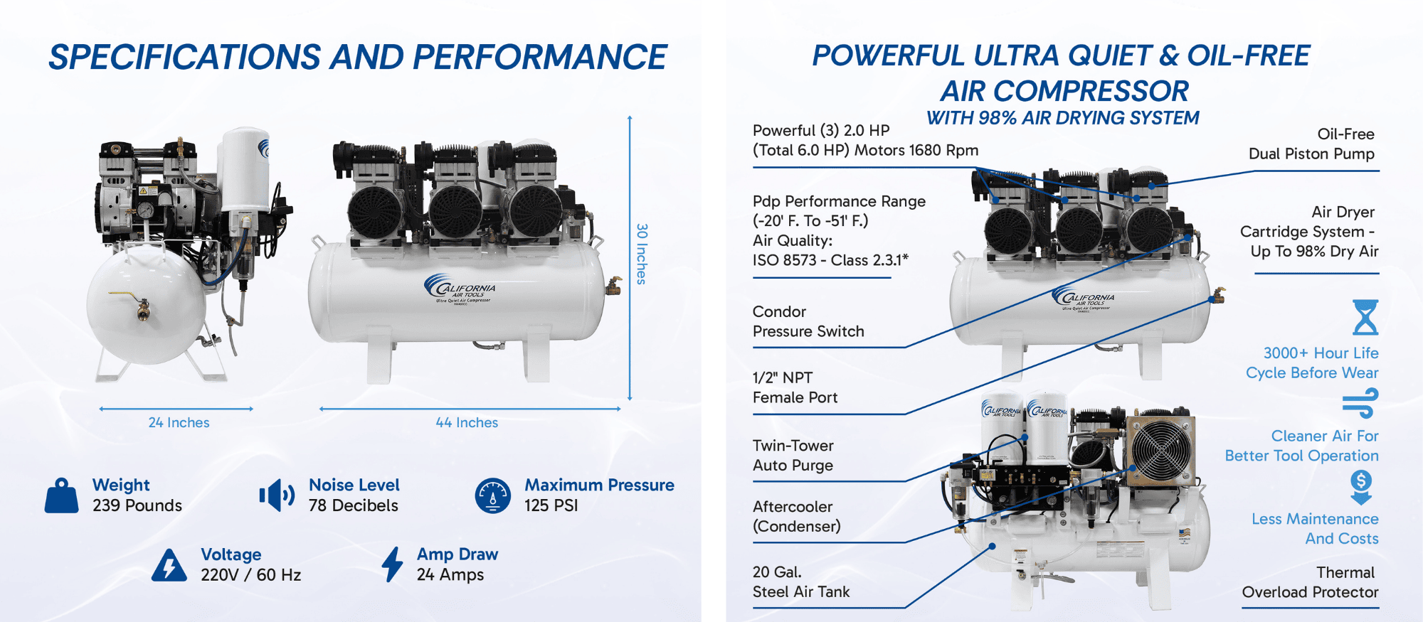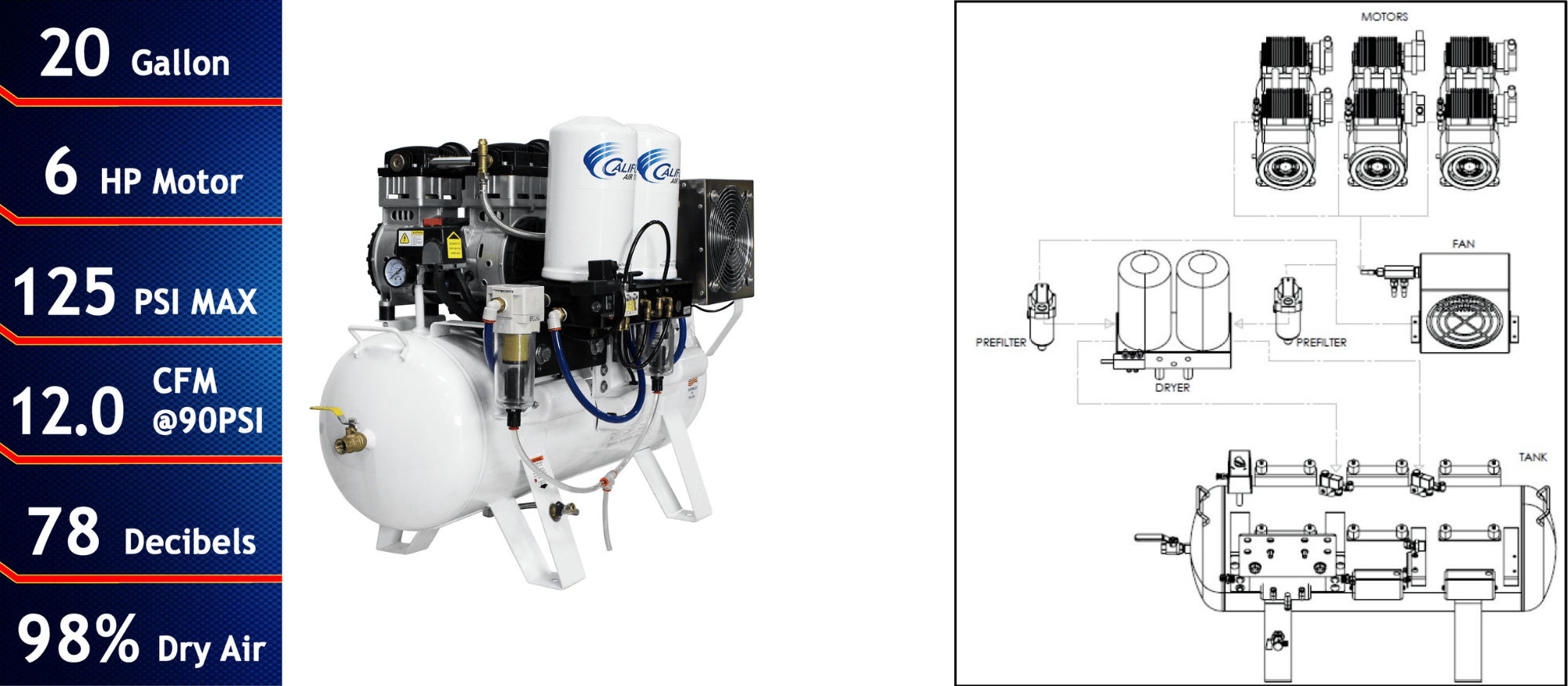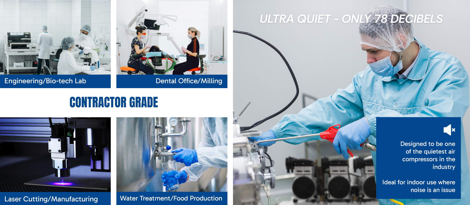 Oil-Free Pump (Class 1) – Cleaner Air for better tool operation. Less maintenance and Costs.