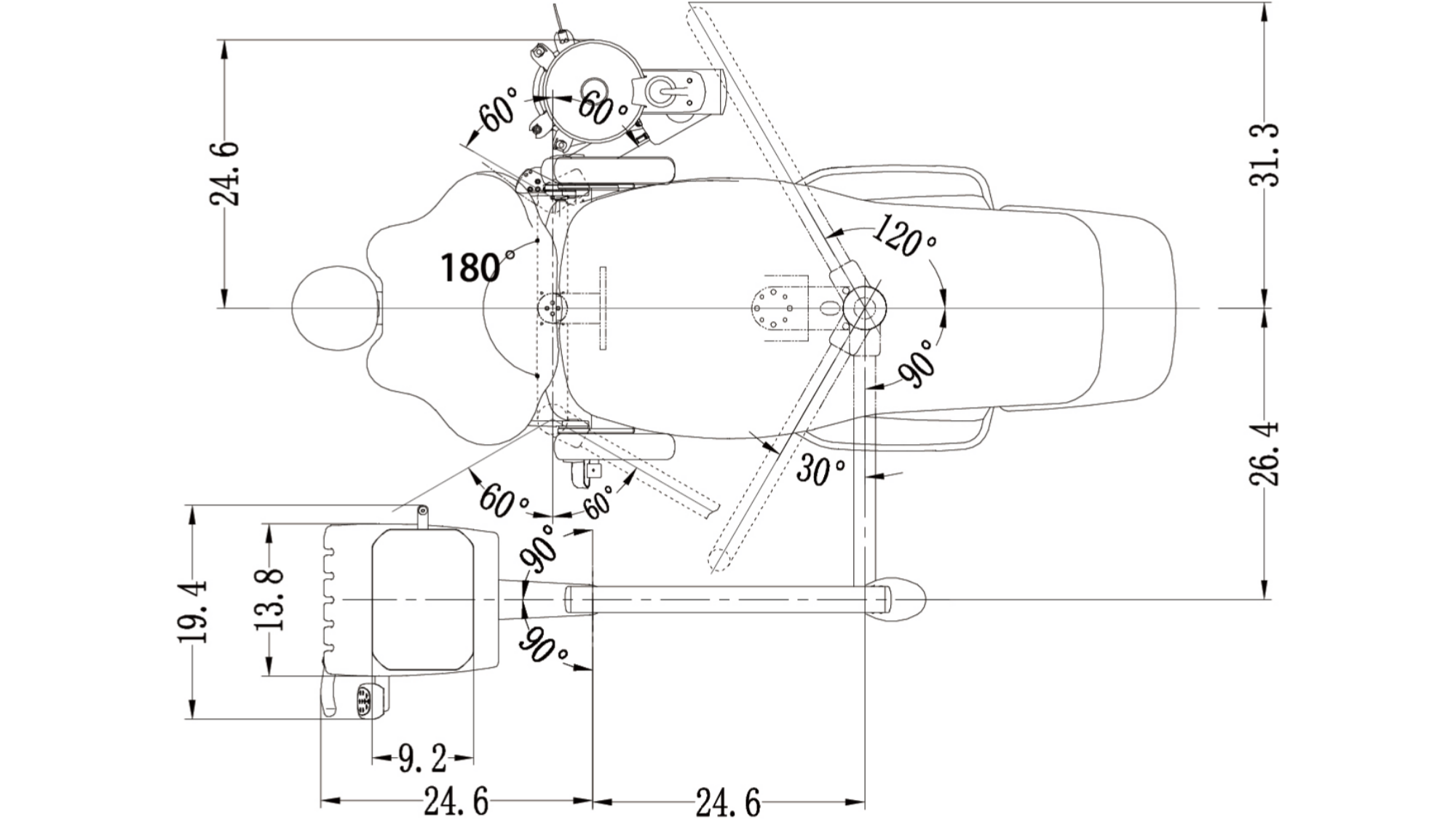 ■ 60 degrees seat rotation, chair safety switch,