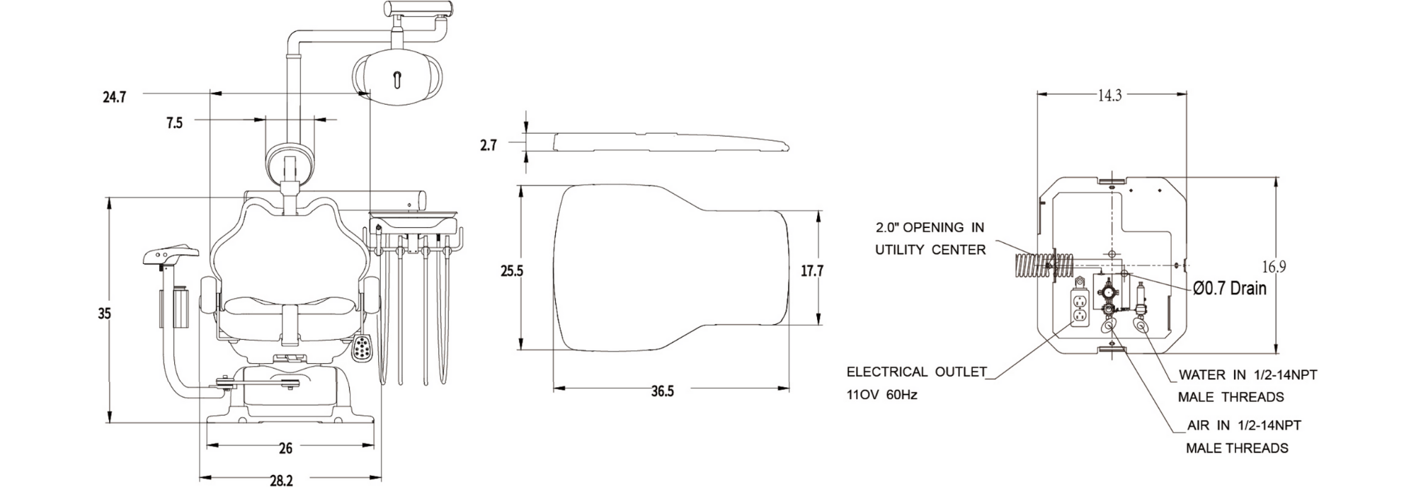 Swing Classic dentist's control head with 3 auto H.P. control,