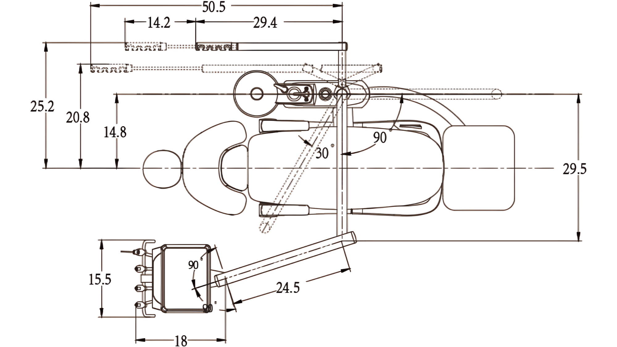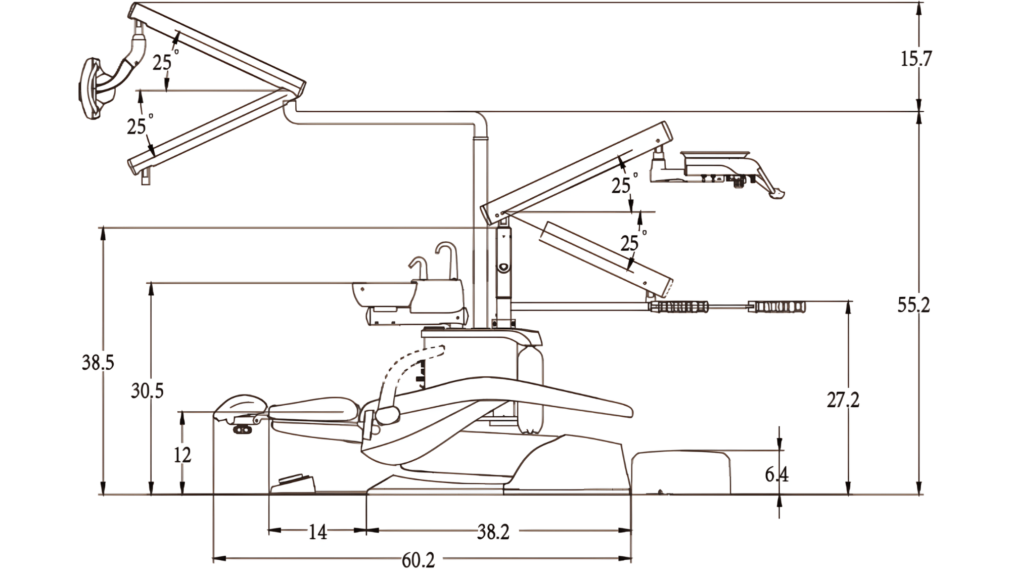 ■ Classic Over the patient (OTP) dental unit with PMU and cuspidor
