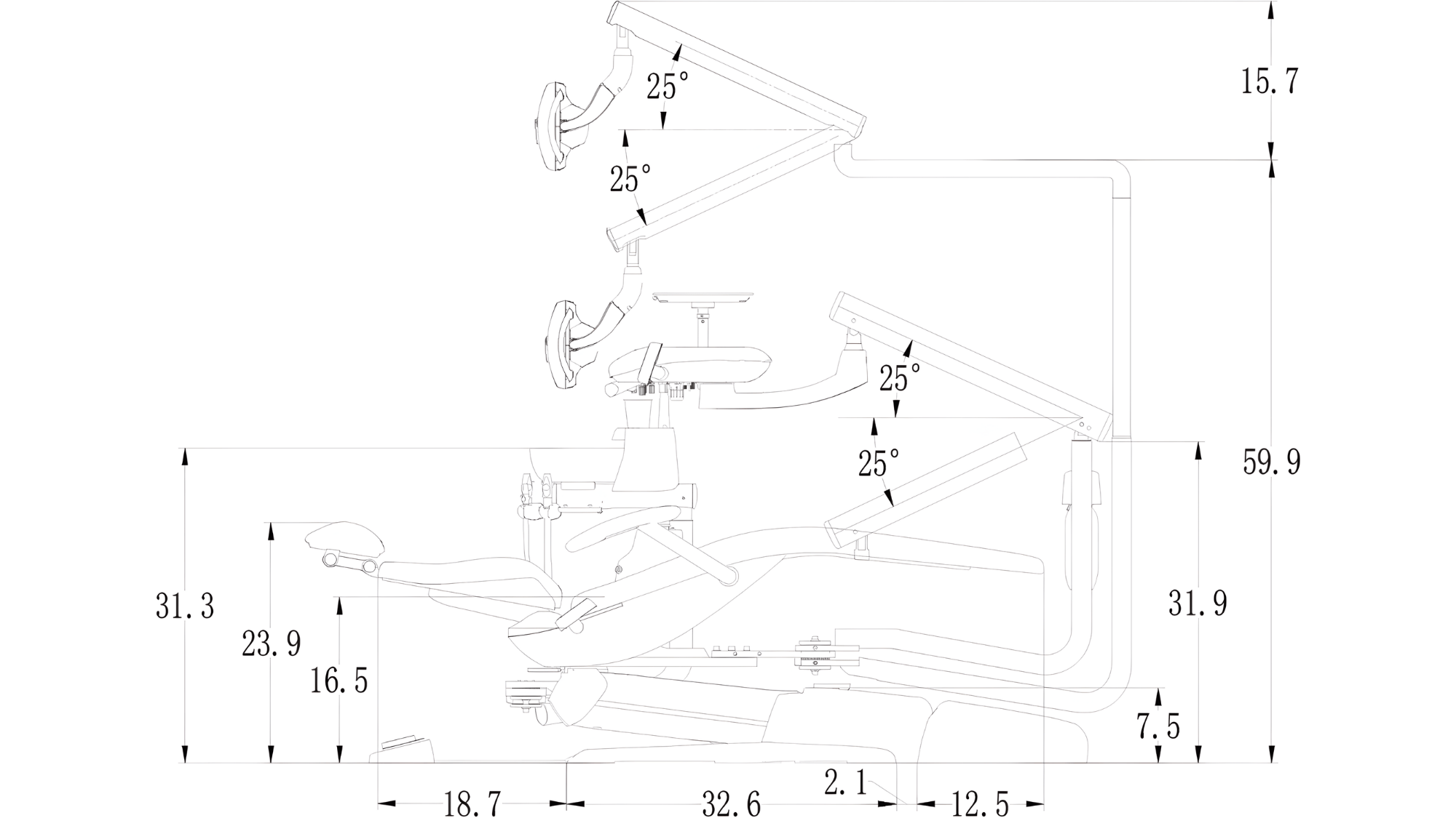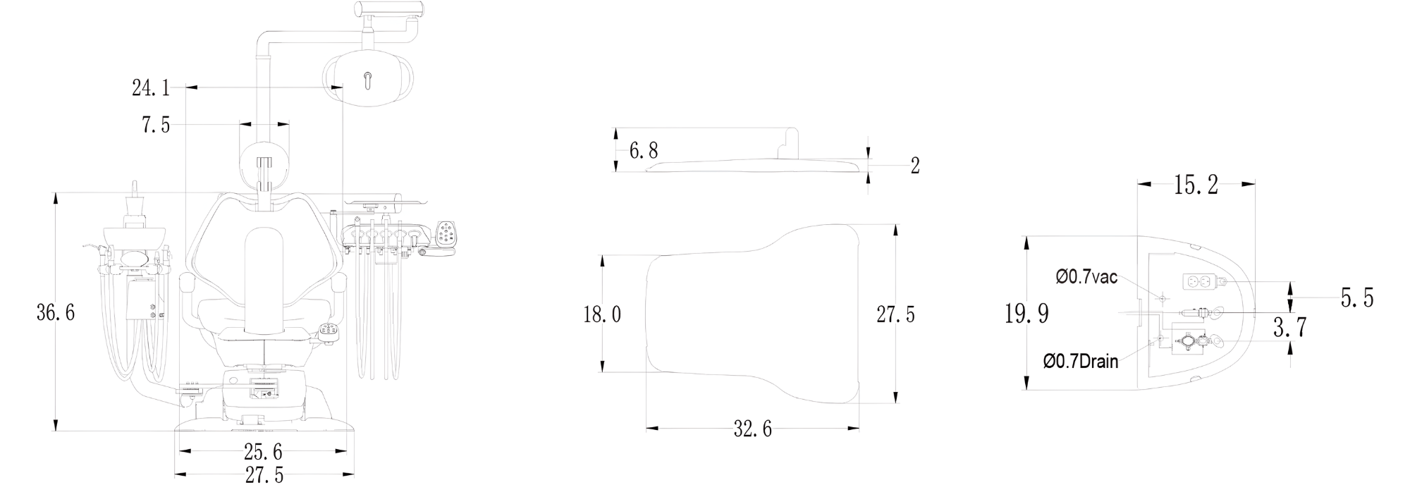 CHAIR MOUNTED SWING REAR CUSPIDOR AND ASSISTANT VACUUM PACKAGE :