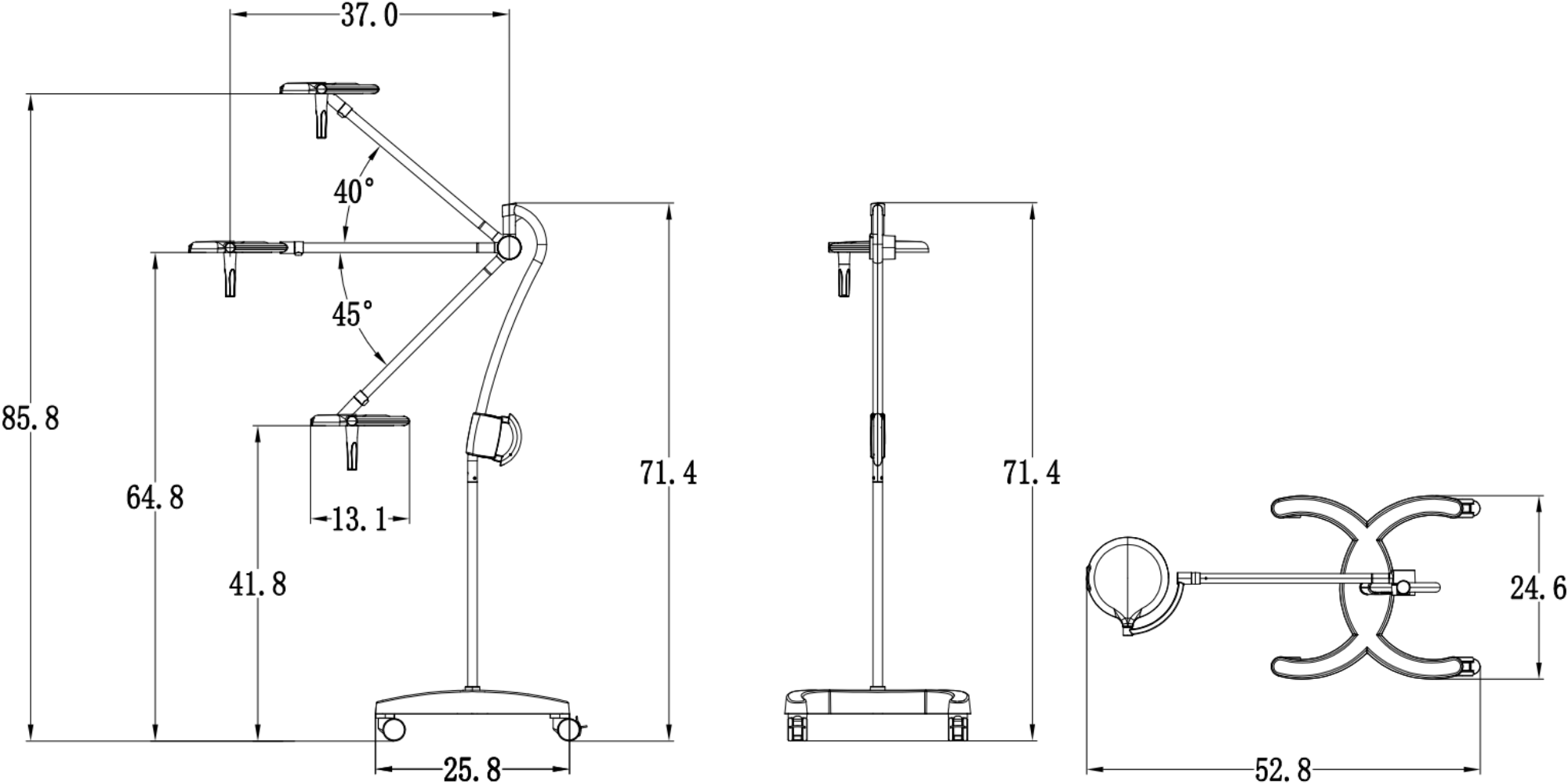 Light height adjustment range: 36in - 86in