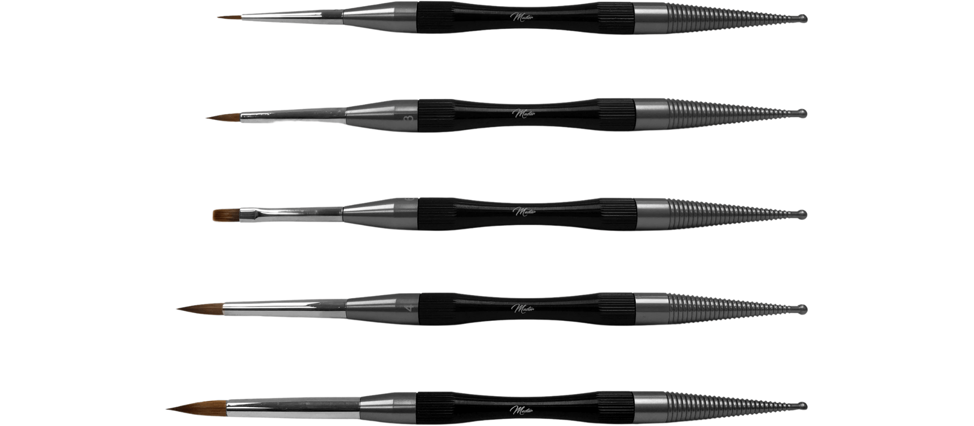 Master Brush Set - ideal for porcelain work. These Brushes are lightweight that includes a carver end. Brush hair are made of Natural hair which makes it more smoother and durable. Brushes are replaceable and available for purchase. Handle has a unique design for more comfortable grip.