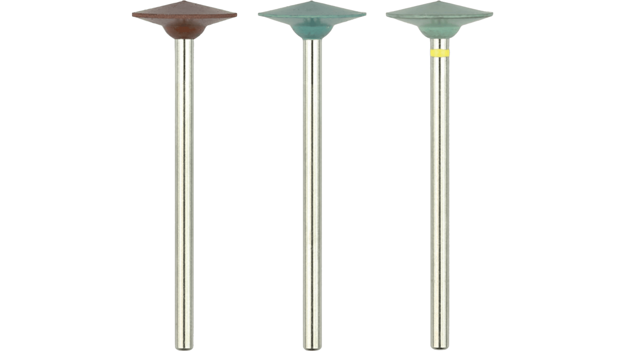 (with yellow banded shank) for super-polishing. Thanks to the high quality of their abrasive particles, the silicone Polishers alone create a high gloss; there is no need for additional polishing paste.