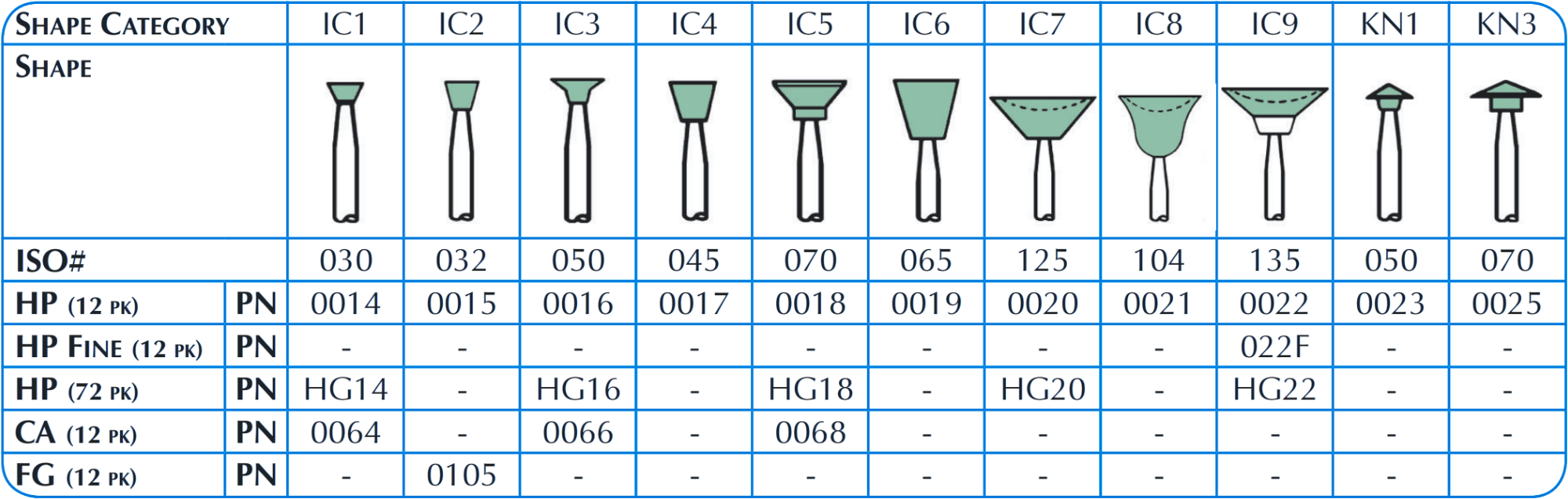• Available in a variety of shapes in HP and CA shanks and selected number of shapes in FG shank