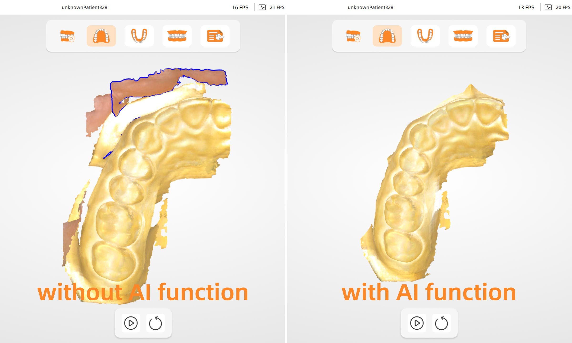 Using AI technology, the scanner removes irrelevant data, like soft tissue from cheeks and tongue, minimizing interference and boosting scan speed and accuracy.