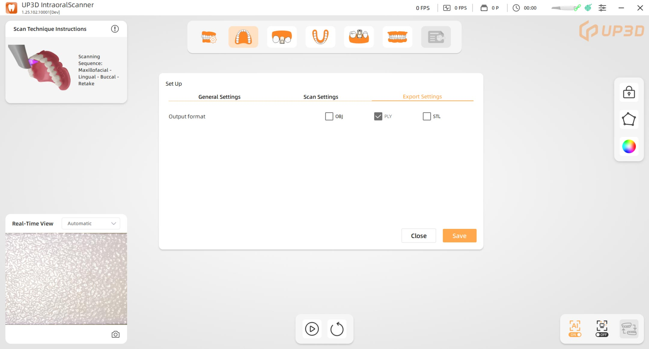 Supports open formats such as STL, PLY, and OBJ, ensuring seamless compatibility with design software like UPCAD, exocad, 3Shape, and others.