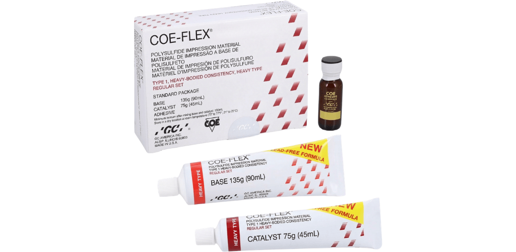 Coe-Flex® is a lead-free, all-purpose rubber base impression material for inlays, crowns, bridges, full and partial dentures, rebasing and relining. In more than 25 years of clinical practice, Coe-Flex® has offered consistently detailed and precise impressions.