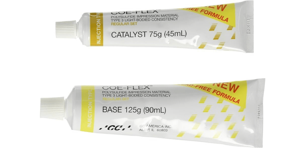 Coe-Flex® is a lead-free, all-purpose rubber base impression material for inlays, crowns, bridges, full and partial dentures, rebasing and relining. In more than 25 years of clinical practice, Coe-Flex® has offered consistently detailed and precise impressions.