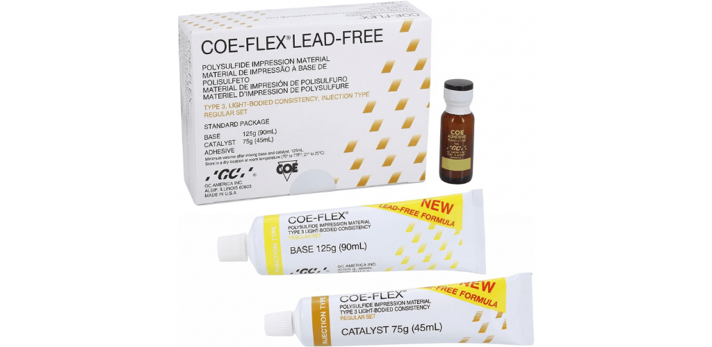 Coe-Flex® is a lead-free, all-purpose rubber base impression material for inlays, crowns, bridges, full and partial dentures, rebasing and relining. In more than 25 years of clinical practice, Coe-Flex® has offered consistently detailed and precise impressions.