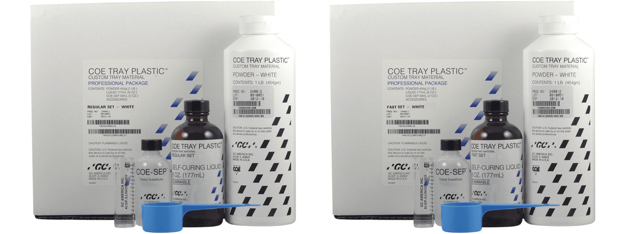 COE Tray PLASTIC⢠is a self-curing Acrylic resin constructed for accurate fitting, individualized custom impression trays. Powder and liquid mixes in seconds to produce smooth dough that can be easily manipulated. This product will not warp or pull away from the cast during polymerization. Trimming is easy since this product grinds away without clogging burs.