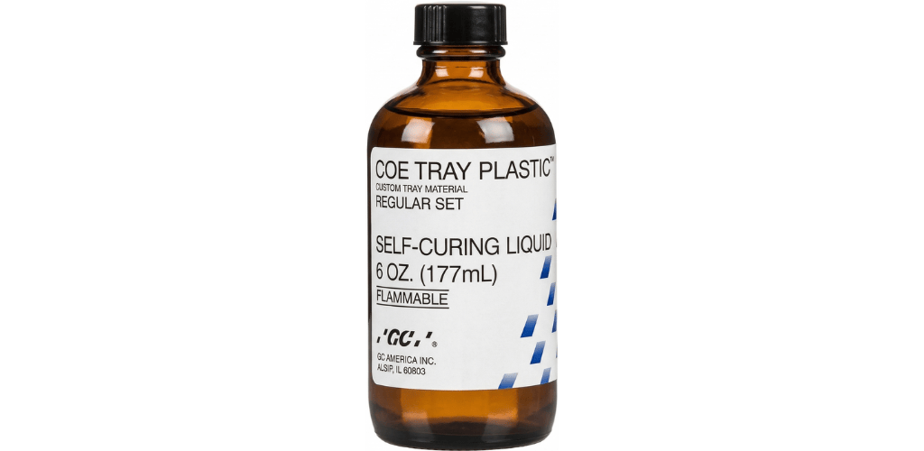 COE Tray PLASTIC™ is a self-curing Acrylic resin constructed for accurate fitting, individualized custom impression trays. Powder and Liquid mixes in seconds to produce smooth dough that can be easily manipulated.