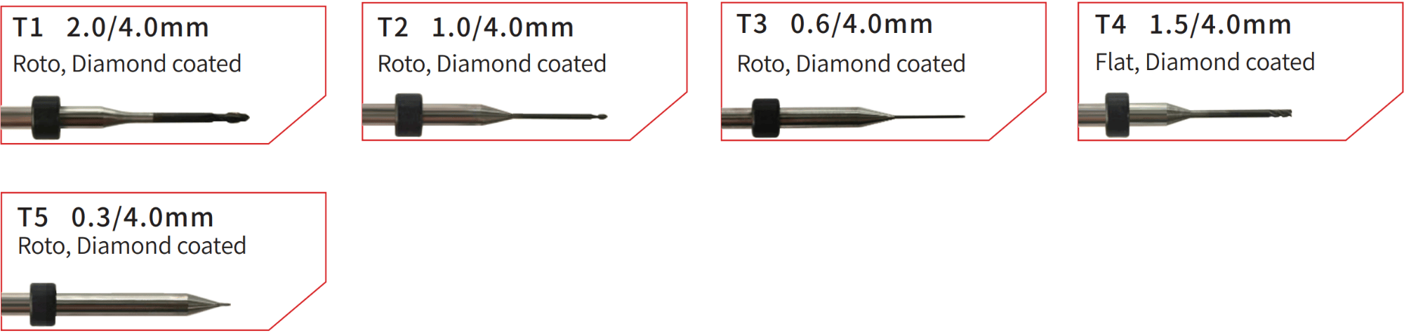 • Suitable for processing φ98mm zirconia discs, resin discs, etc