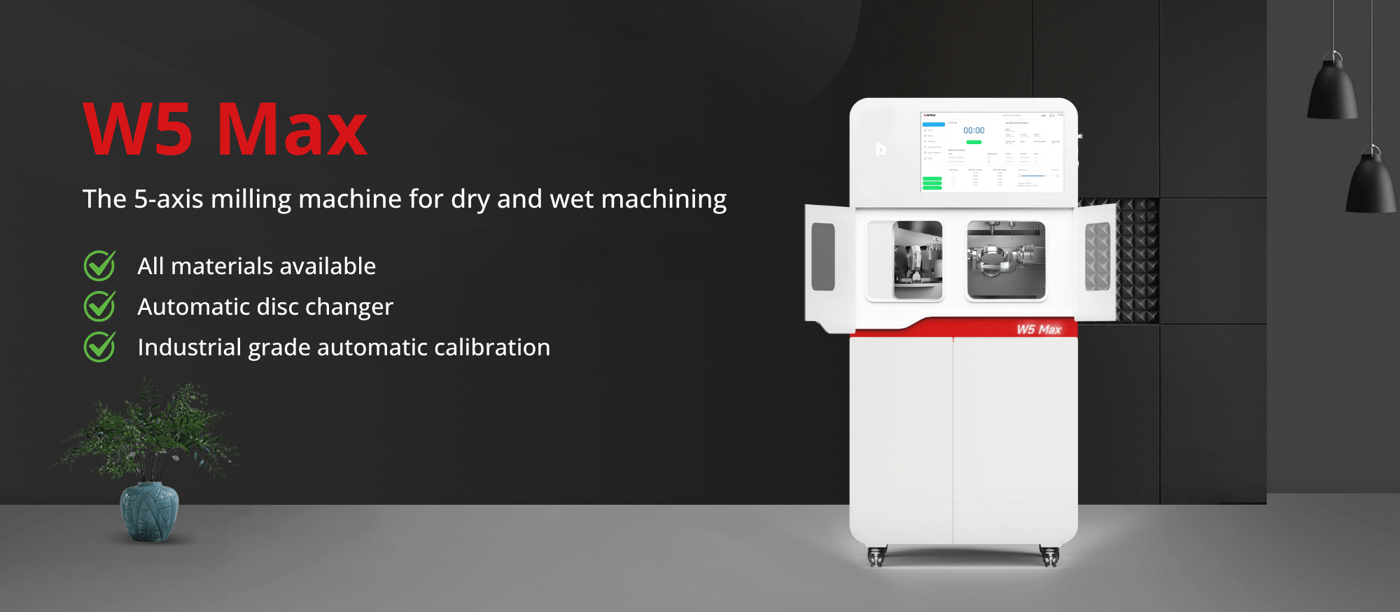 HD camera for Remote monitoring, instant file sharing, NC memory recall, burs lifespan alerts, and RFID tray identification. 24" HD touchscreen with Win 10, supporting software such as Hyperdent, Millbox, WorkNC. Switch effortlessly between WET/dry modes for all Milling needs.