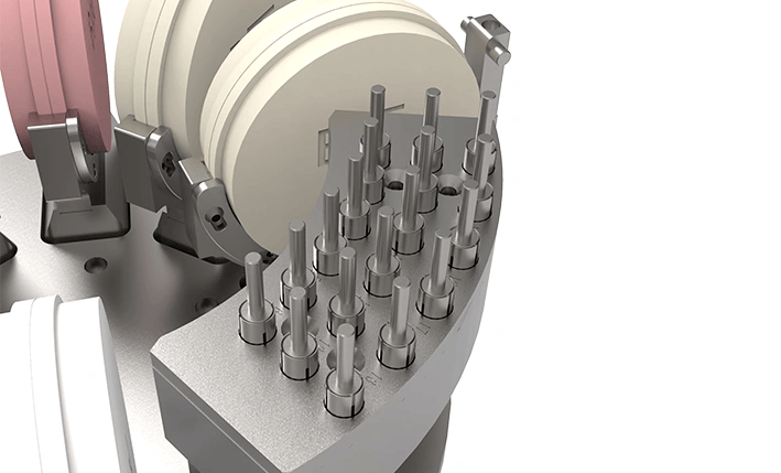 The Changer and tool magazine are separated from the working chamber, prevent contamination and facilitate easy cleaning. The drawable tool magazine simplifies tool replacement. Additionally, the dry/WET switch module further boosts convenience and comfort.