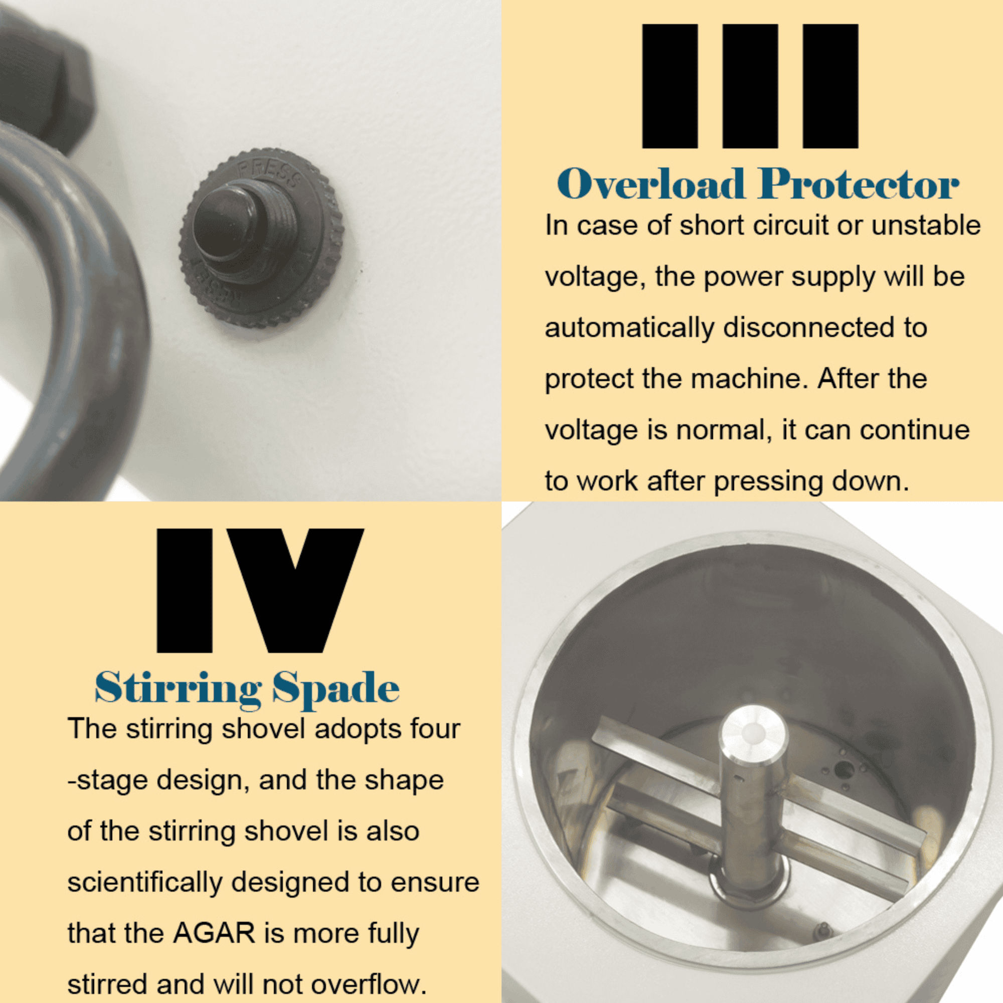 • Large capacity design, mixing tank capacity up to 2.9gal, can put more AGAR at once!