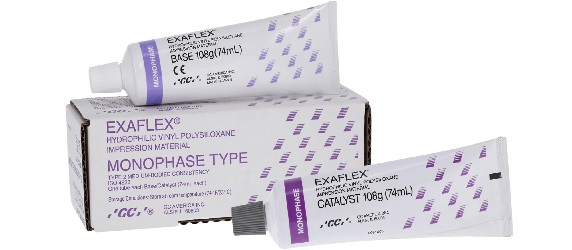 GC EXAFLEX® Monophase Standard Pack - Contains: 1 base (74 mL), 1 catalyst (74 mL) and 1 mixing pad. - # 138401
