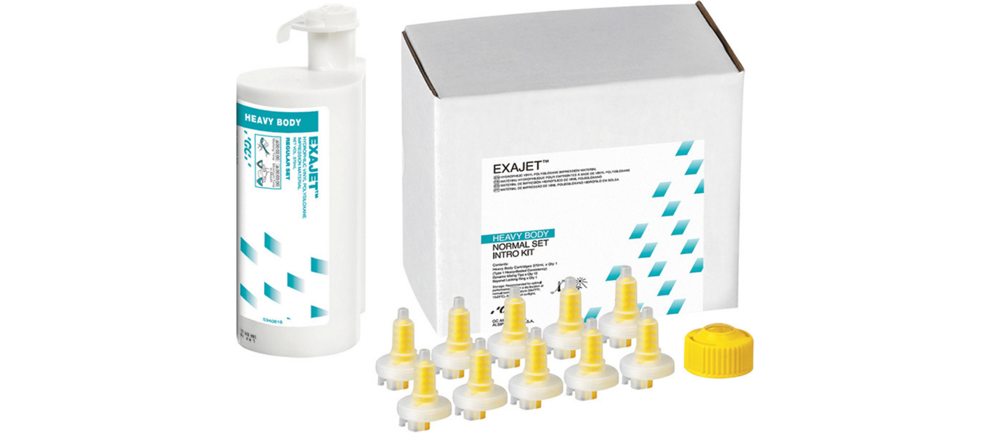 GC EXAJET™ Heavy Body Normal Set Intro Package - Contains: 1 cartridge (370 mL), 10 dynamic mixing tips and 1 bayonet locking ring. - # 137615