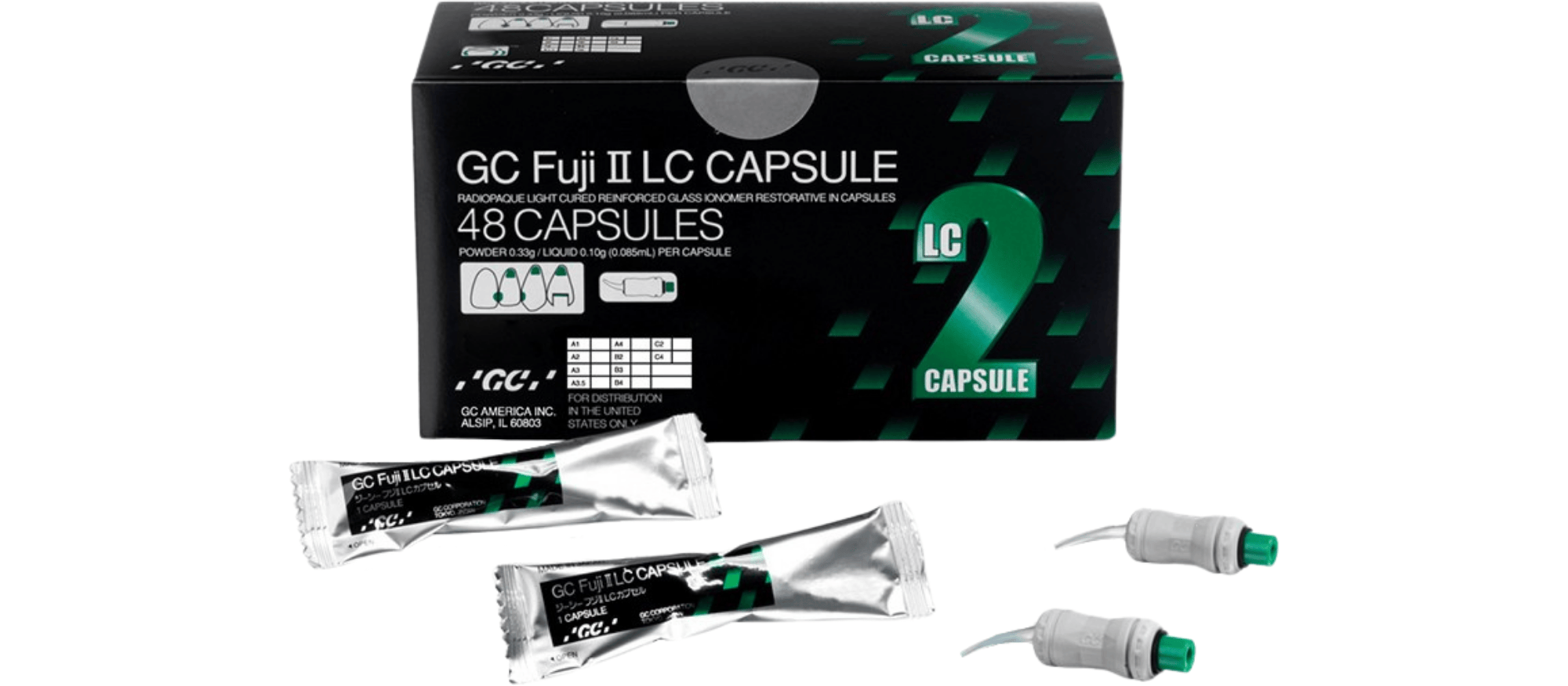 GC Fuji II LC® is a LIGHT-CURED glass Ionomer Restorative with outstanding flexural strength and excellent bond strength to teeth even in presence of saliva. It is available in premeasured unit dose capsules for no-mess mixing.