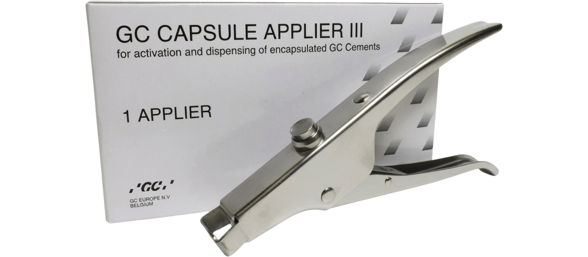GC CAPSULE APPLIER III is used with all of GC materials in capsules. It pre-activates the capsule and dispenses the material. This product is autoclavable and easy to clean.