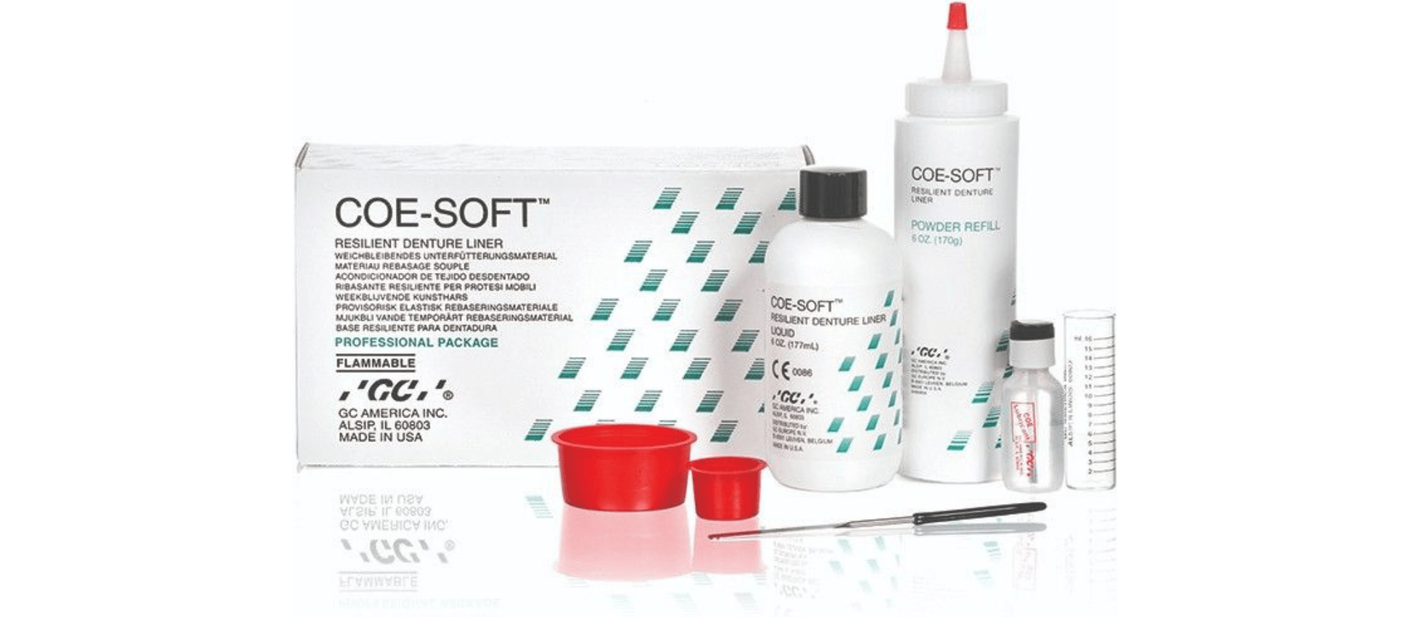 COE-SOFT™ is a resilient, self-curing reline material that is used when the patient requires a soft, temporary liner in upper or lower dentures. COE-SOFT™ polymerizes in or out of the mouth in approximately 15 minutes. The reline will normally last for approximately 3 months.