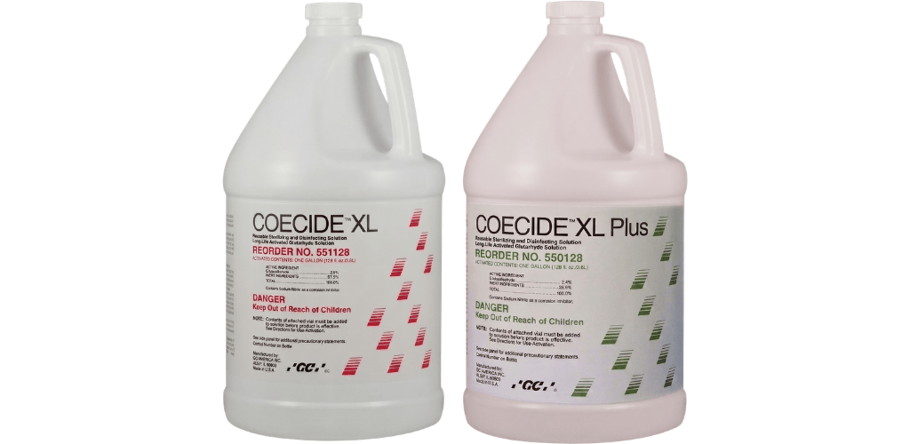 COECIDE® XL and COECIDE® XL PLUS have a broad spectrum of sporicidal, tuberculocidal, virucidal, bactericidal, pseudomonacidal and fungicidal activity. It's corrosion inhibitors protect instruments. These two products are shipped in unactivated gallons. The included buffer solution can activate one quart at a time for economy.