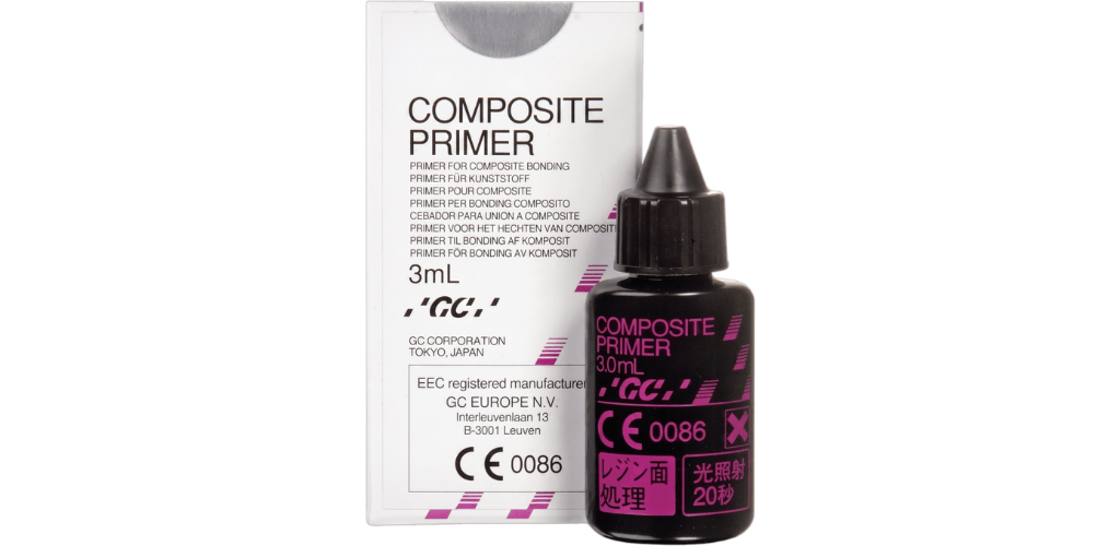 GCComposite PRIMER is an adhesive that assures safe bonding when individualizing artificial teeth and acrylic denture bases using Gradia® and Gradia® gum shades micro-hybrid Composite system.