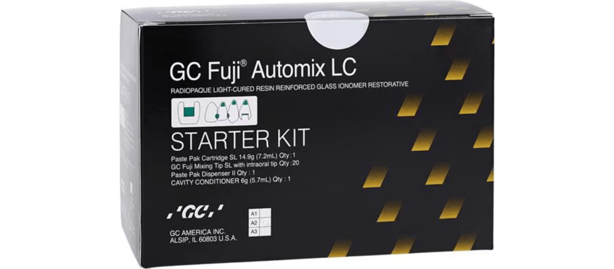 A3 - Contains: 1 GC Fuji® Automix LC Set, 1 Paste Pak Dispenser II, 1 CAVITY CONDITIONER (5.7 mL) and 20 Automix Tips.