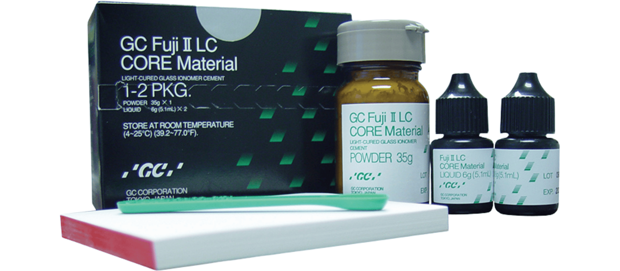 GC Fuji II LC® CORE is a triple-CURED, resin reinforced glass Ionomer crown and core build-up material. This material is well suited for use as a base under composite resin and amalgam, or as a temporary Restorative.