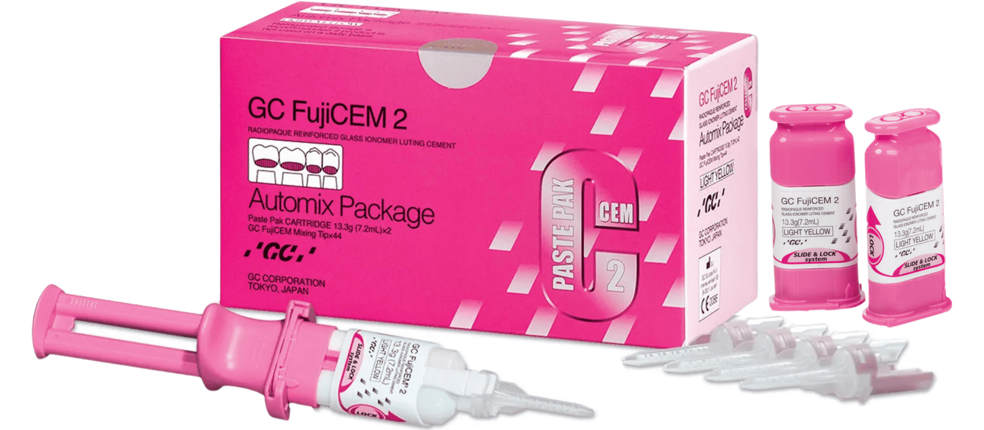 The automix paste pak dispensing system ensures a consistent mix every time, allowing you to place every restoration with the confidence that it will last. Fast, easy to use and stronger than ever, the new GC FujiCEM® 2 from GC America is the ideal Luting cement for all indirect restorations.