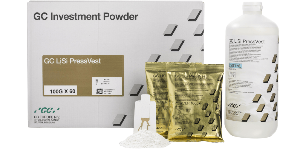 GC LiSi PRESSVEST is a phosphate bonded Investment for Press ceramic techniques offering you an easier, faster and safer process. Hydrofluoric acid treatment and alumina blasting are no longer required for the removal of the reaction layer.