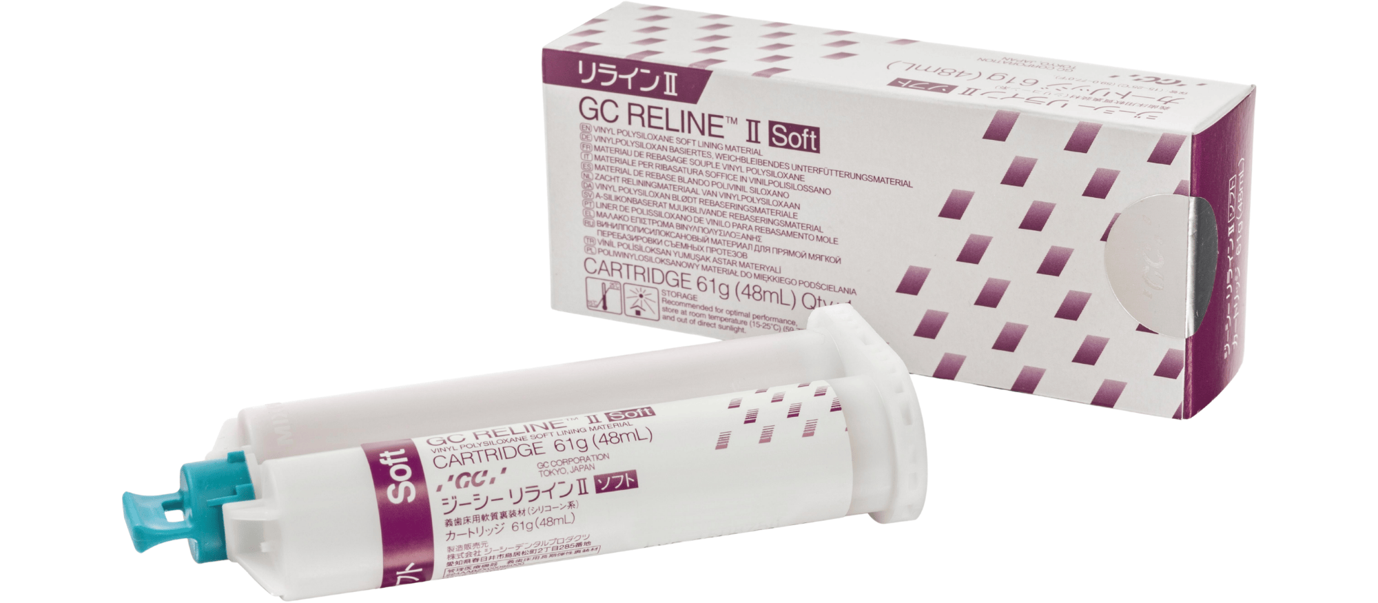 GC RELINE™ II may be used with resin and metal-based dentures, and when applied as directed with the accompanying Primer. The GC RELINE™ II Introductory Kit includes one liner material cartridge, primer, remover, trimming point, finishing wheel, mixing tips, plastic spatula, disposable brushes and a technical guide.