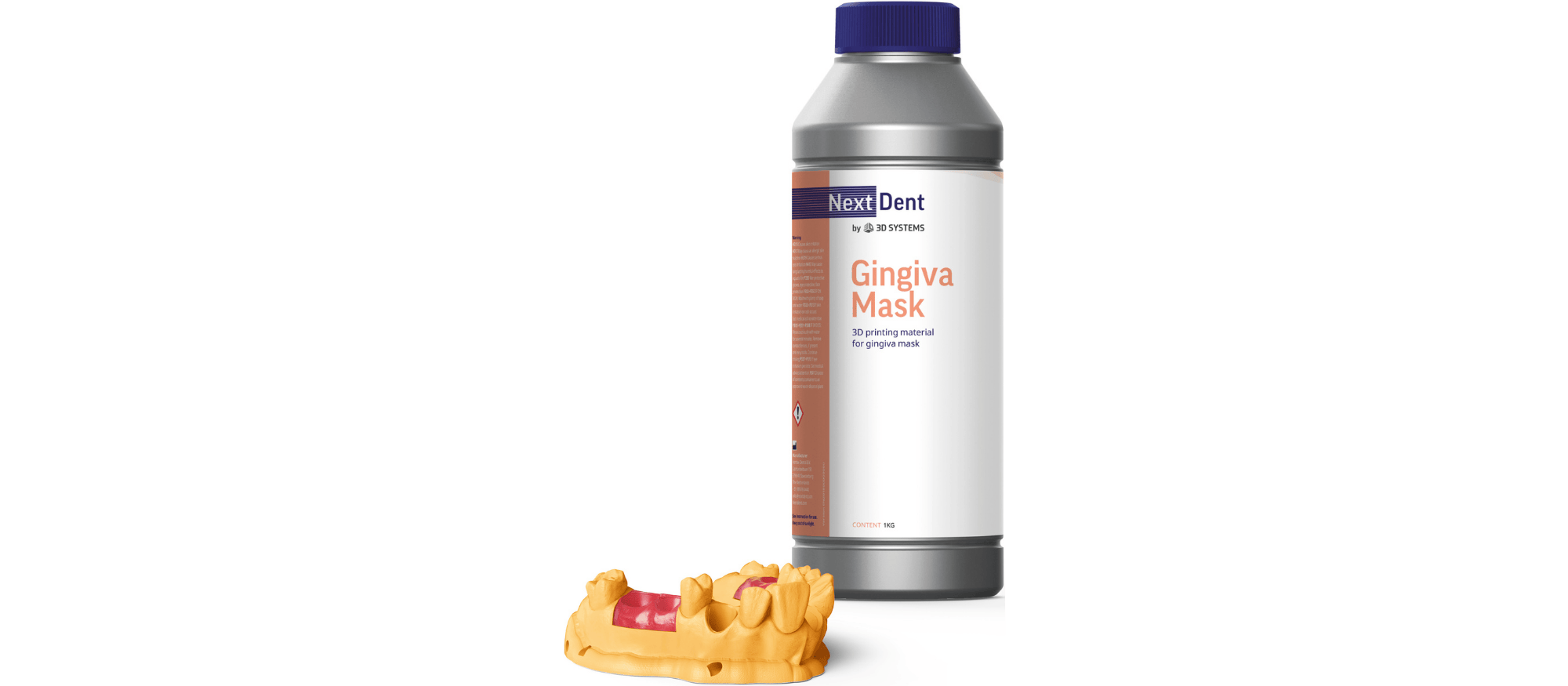 NEXTDENTGingivaMASK is a flexible material that can be used in combination with the model material. This makes it possible to print parts of the model that need a certain flexibility, such as Gingiva Masks on implant models. Available in color Pink.