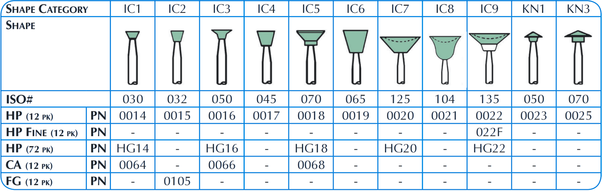 • Available in a variety of shapes in HP and CA shanks and selected number of shapes in FG shank