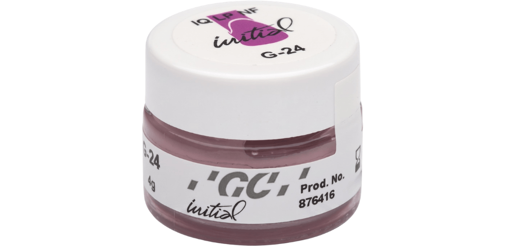 Available in ready to use consistency, the GC Initial® IQ Lustre Pastes NF Gum Shades are based on fine ceramic particles and can be applied in a thicker layer where they will exhibit unsurpassed natural gum reproduction and very natural GLAZE to your restorations.