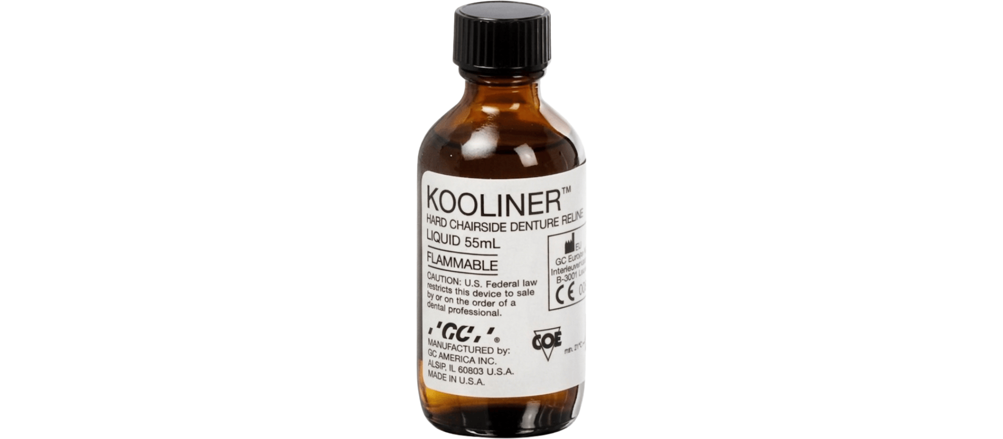 Kooliner™ is a Hard, Chairside reliner that has been formulated for reduced exothermic heat. This product can completely self-cure in the patient's mouth in approximately 10 minutes.