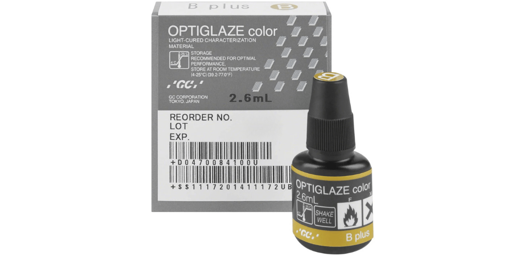OPTIGLAZE™ color allows you to change shades, shift value, characterize, create effects and Glaze all your resin type prosthetics in no time at all. Best of all, offer your dentists and patients a more beautiful and esthetic restoration that will last due to GC's innovative new homogeneously dispersed nano-filler technology.