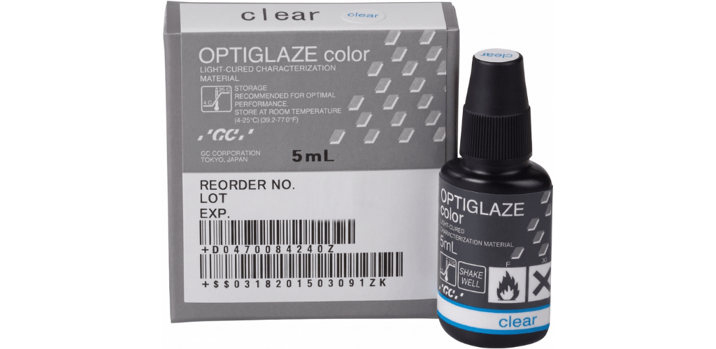 OPTIGLAZE™ color allows you to change shades, shift value, characterize, create effects and Glaze all your resin type prosthetics in no time at all. Best of all, offer your dentists and patients a more beautiful and esthetic restoration that will last due to GC's innovative new homogeneously dispersed nano-filler technology.