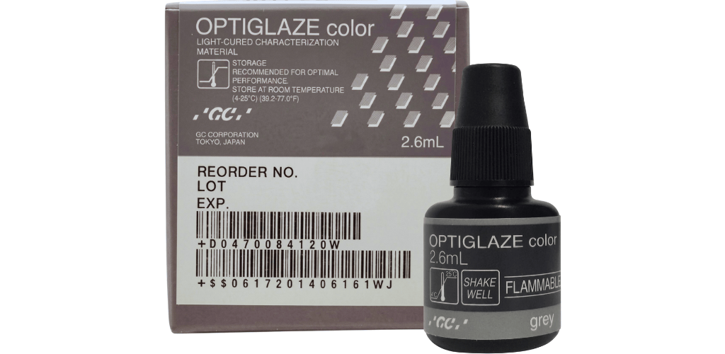 OPTIGLAZE™ color allows you to change shades, shift value, characterize, create effects and Glaze all your resin type prosthetics in no time at all. Best of all, offer your dentists and patients a more beautiful and esthetic restoration that will last due to GC's innovative new homogeneously dispersed nano-filler technology.