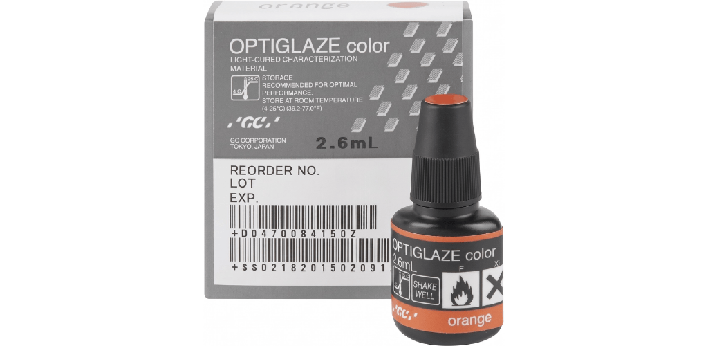 OPTIGLAZE™ color allows you to change shades, shift value, characterize, create effects and Glaze all your resin type prosthetics in no time at all. Best of all, offer your dentists and patients a more beautiful and esthetic restoration that will last due to GC's innovative new homogeneously dispersed nano-filler technology.