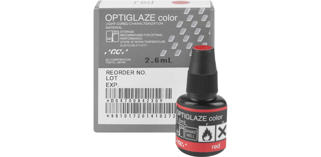 OPTIGLAZE™ color allows you to change shades, shift value, characterize, create effects and Glaze all your resin type prosthetics in no time at all. Best of all, offer your dentists and patients a more beautiful and esthetic restoration that will last due to GC's innovative new homogeneously dispersed nano-filler technology.