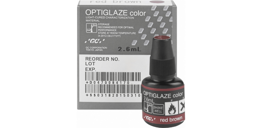 OPTIGLAZE™ color allows you to change shades, shift value, characterize, create effects and Glaze all your resin type prosthetics in no time at all. Best of all, offer your dentists and patients a more beautiful and esthetic restoration that will last due to GC's innovative new homogeneously dispersed nano-filler technology.