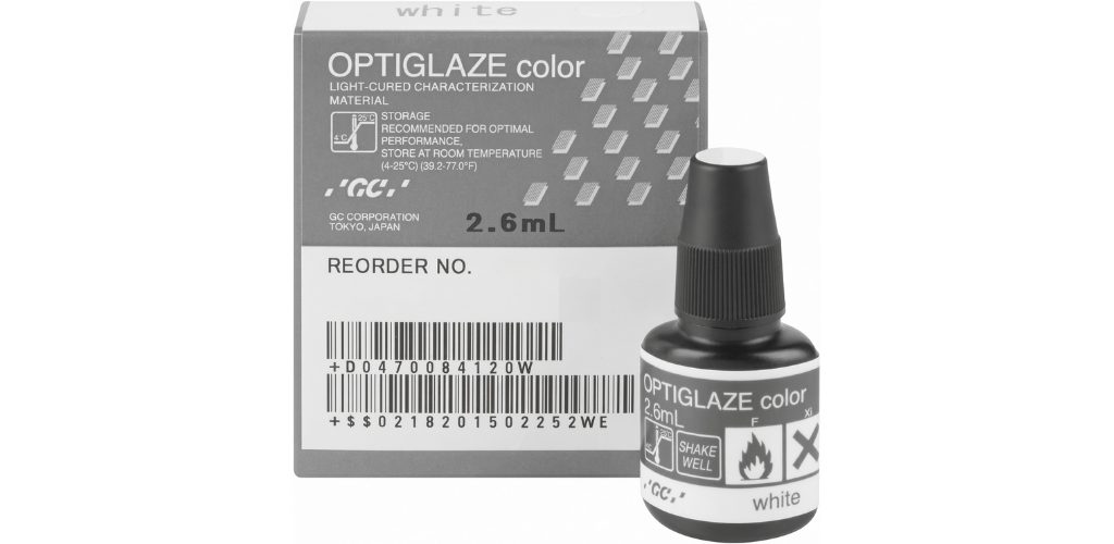 OPTIGLAZE™ color allows you to change shades, shift value, characterize, create effects and Glaze all your resin type prosthetics in no time at all. Best of all, offer your dentists and patients a more beautiful and esthetic restoration that will last due to GC's innovative new homogeneously dispersed nano-filler technology.