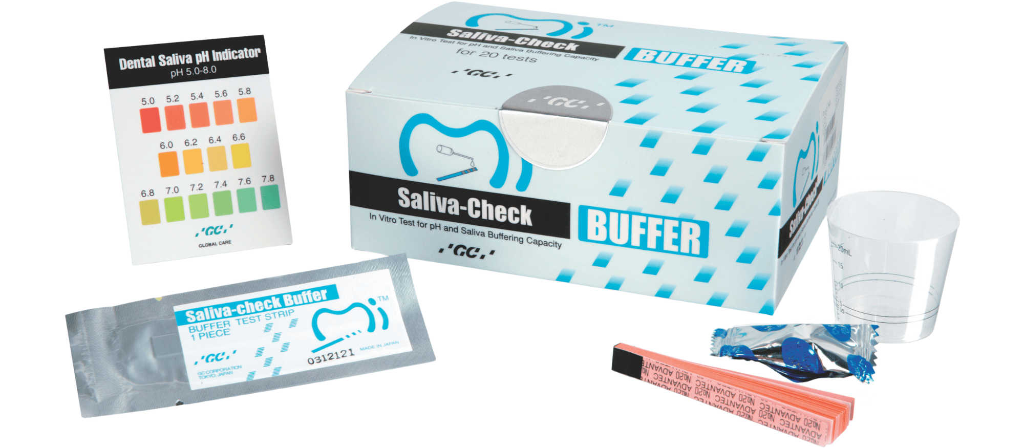It is also helpful for testing hydration, salivary consistency, resting saliva pH, stimulated saliva flow, stimulated saliva pH and saliva buffering capacity. Saliva-Check BUFFER is ideal for use during routine oral examinations.