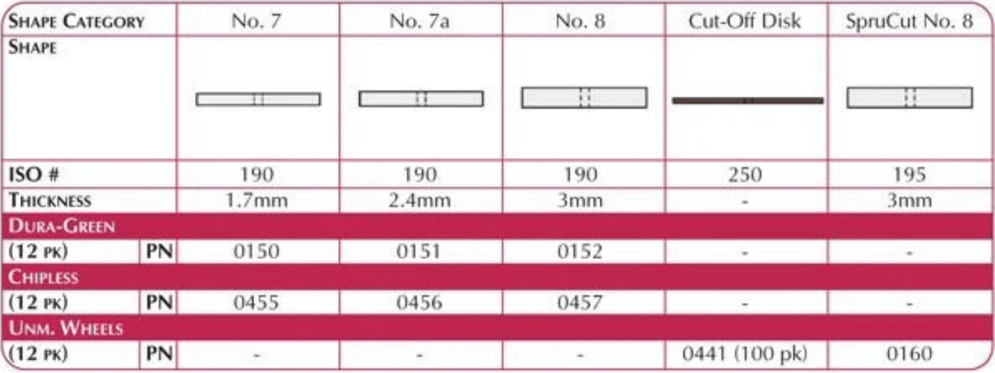 • Use Cut-Off Disks ( resin-bonded ) and SpruCut WHEELS ( silicon carbide ) for: