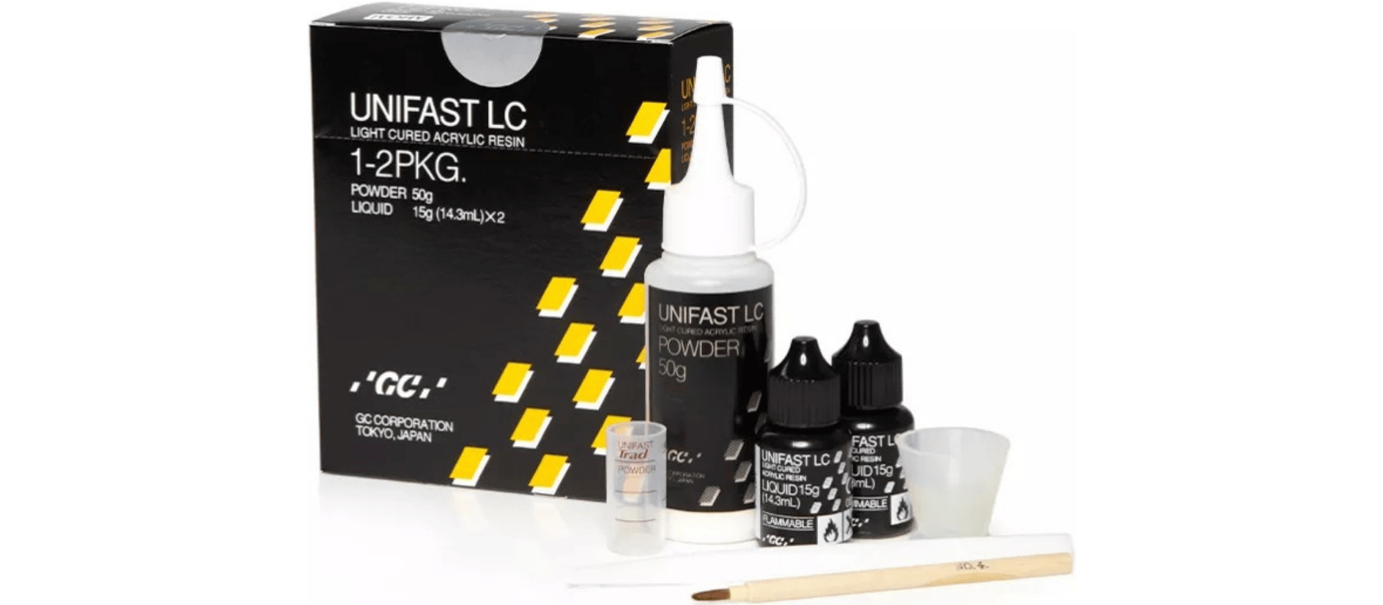 UNIFASTLC is the unsurpassed Material for constructing provisional bridges, crowns, inlays, onlays, splints and orthodontic plates. This superior acrylic resin easily makes accurate fitting, aesthetic and highly functional temporary restorations. The curing stages, such as slurry stage, dough-like stage, rubber-like stage and final cure, can be controlled by visible light-curing to give unconditional working time. Work as fast or as slow as you want for the accuracy you need. This product can be used with brush technique. It also works well with mylar Crown forms.